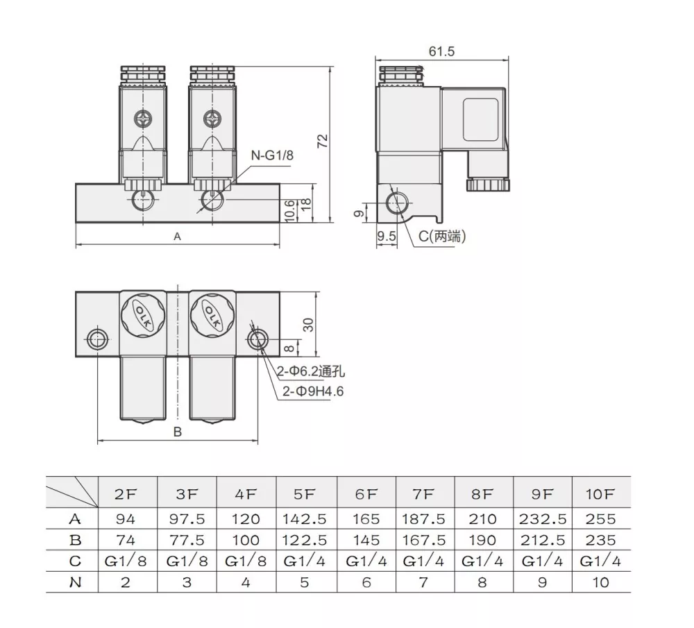 2В025 двоположајни, двосмерни нормално затворени електромагнетни вентил директног дејства може да се повеже да формира базу вентила у складу са захтевима примене, са флексибилним проширењем од 2 до 12 положаја. Овај колектор електромагнетног вентила 2В025 са више станица има компактан и лаган дизајн, али се не може раставити за индивидуалну употребу. Тело вентила је направљено од висококвалитетне легуре алуминијума и користи НБР заптивни материјал.