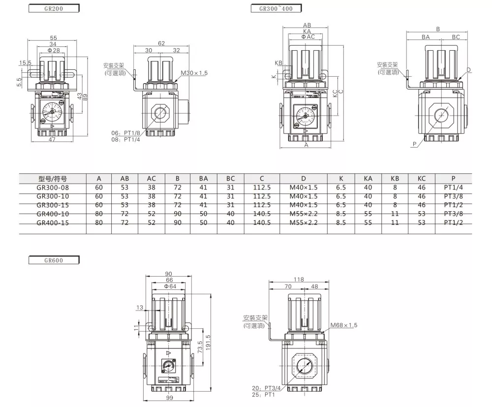 Аиртац тип ГР регулатор притиска обезбеђује стабилну и прецизну контролу притиска за пнеуматске системе. ОЛК ГР пнеуматски регулатор са издржљивом конструкцијом и лаким подешавањем, обезбеђује поуздане перформансе у опреми за аутоматизацију, ваздушним алатима, компресорима и општим индустријским апликацијама. Компатибилан са филтерима, мазивама и ФРЛ јединицама.