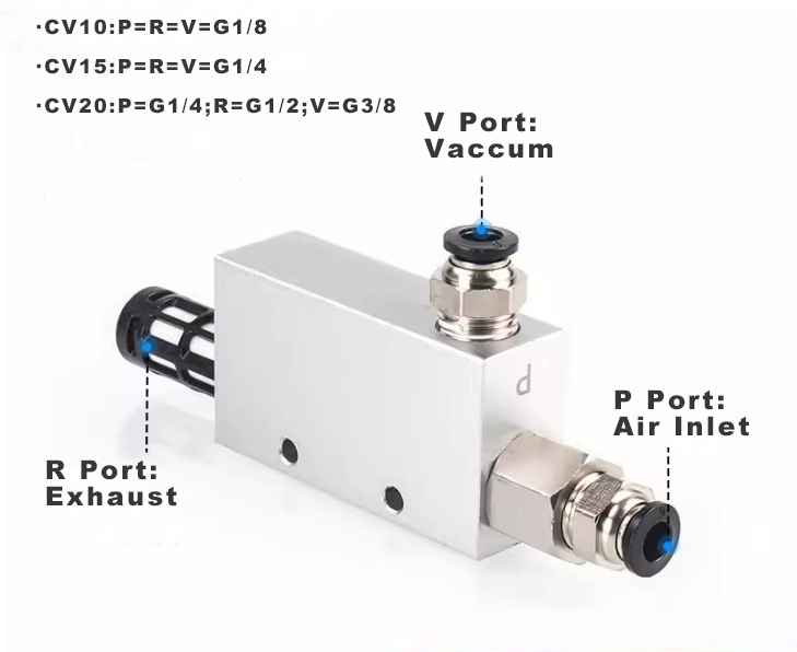 2.Вакуум генератори са широким спектром типова и перформанси за испуњавање захтева за пријаву.ЦВ серија је вакуумски генератор.