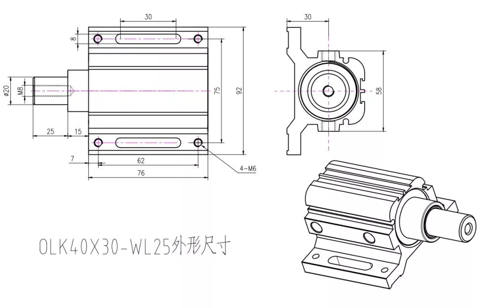 ОЛК цилиндар за позиционирање машина за гравирање је специјализовани пнеуматски цилиндар дизајниран за ЦНЦ машине за гравирање и глодање. Његов примарни задатак је да држи обрађене комаде на месту или их гурне у исправан положај пре обраде. Направљен је да буде компактан, јак и отпоран на прашину и струготине настале током гравирања.