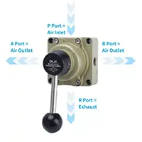Оулеикаи (ОЛК) ХВ200А / Б двосмјерни вентили за руковање са четири порта ручно управљају ручно се ручно управљају, са пребацивањем ваздушних стаза постигнуто ротирањем ручке вентила. Лако је радити и интуитирати, не захтевају додатно снабдевање енергијом. ХВ200б 2/4 вентил за луку садржи уграђени пригушивач на доњој издужној луци.