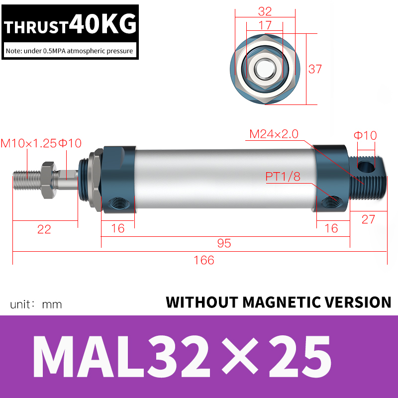 Мини цилиндар серије МАЛ Стандардне спецификације: