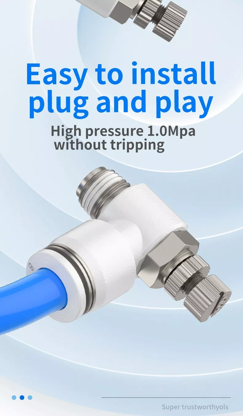 Доступни у оба типа пригушивања улаза и издува, СЛ вентили се могу директно монтирати на цилиндре ради уштедеарматуре, цевовода, и време инсталације. Окретни дизајн омогућава флексибилну оријентацију цеви, а точак за подешавање са механизмом за закључавање обезбеђује фину и стабилну контролу протока.