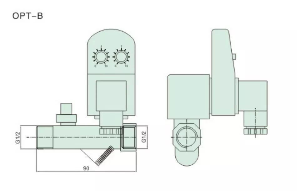 ОЛК ОПТ-Б Електронски тајмер Ауто Драин подржава и електричну контролу и ручно искључивање као двоструку заштиту; екстерни прекидач за ручно искључивање је резервисан на телу вентила да спречи проток током нестанка струје. Улаз се налази на страни која је удаљена од завојнице, средњи отвор без навоја је излаз за одвод, а крајњи отвор је излаз.