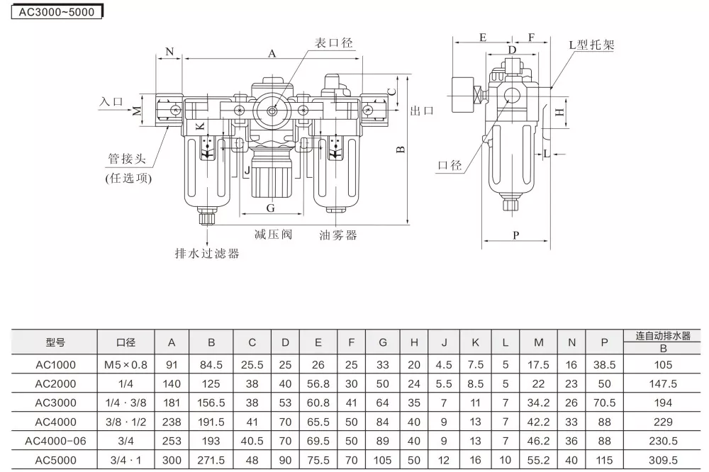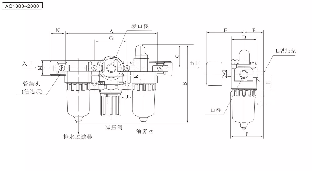 АФ (филтер за ваздух) + АР (вентил за регулацију притиска) + АЛ (подмазивач уљне магле) = АЦ трострука јединица