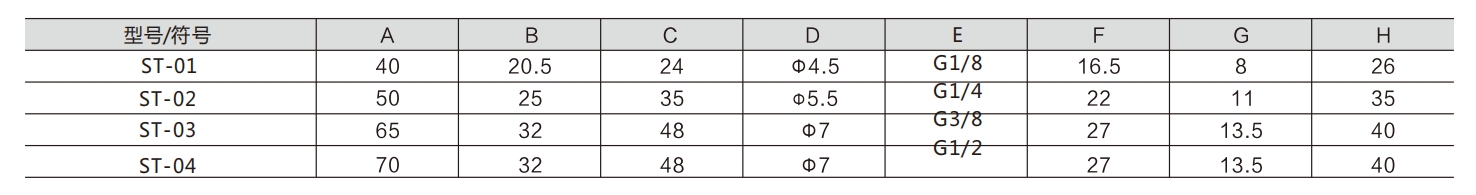 Ако ваздушни прикључци ваздушне цеви нису одабрани правилно, узрокујући унос ваздуха или исцрпљујуће у луци да је врло мали, језгро вентила не може у потпуности да се помакне, што је повезан са свим прикључцима. То се мора спречити. СТ-01: Г1 / 8; СТ-02: Г1 / 4; СТ-03: Г3 / 8; СТ-04: Г1 / 2