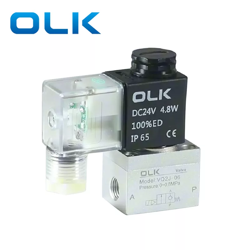 ВК серија Пилот који је радио двосмерни радни медији са соленоидима суви ваздух са великим капацитетом протока (1,5 дм³ / (с · (С · бара) .иницијално је затворено (нц) тип вентила. Алуминијумски алуминијумски материјал за вентил је више издржљивији, компактни и лагани и лагани. Репосент велике брзине 7МС или мање. Избор наводног интерфејса подељен на две спецификације: ВК2Ј-06 (Г1 / 8), ВК2Ј-08 (Г1 / 4).