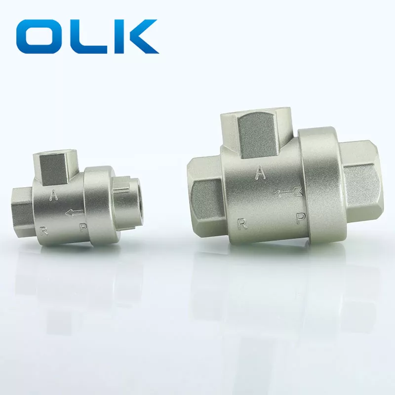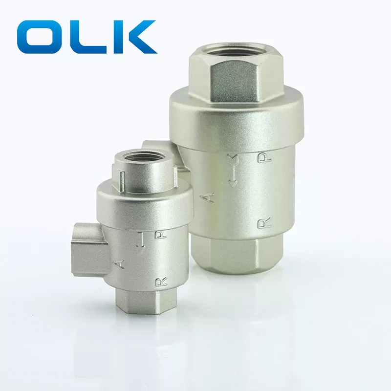 ОЛК КСК Брзи издувни вентил је вентил који аутоматски исцрпљује гас под притиском из утичнице када долазне притисак опада на одређену вредност. Када на улазну притисак има ваздух, језгро вентила (једносмјерни прстен за бртвљење или дијафрагма) гура се отворено, затвара гасузну луку и излазу из утичнице. Када се улаз празни, излазни притисак гура језгро вентила да запечати улаз, а излазни гас брзо исцрпљује кроз издувни порт. КСК Брзи испушни вентил нуди пет опција величине везе: М5, Г1 / 8, Г1 / 4, Г3 / 8 и Г1 / 2.